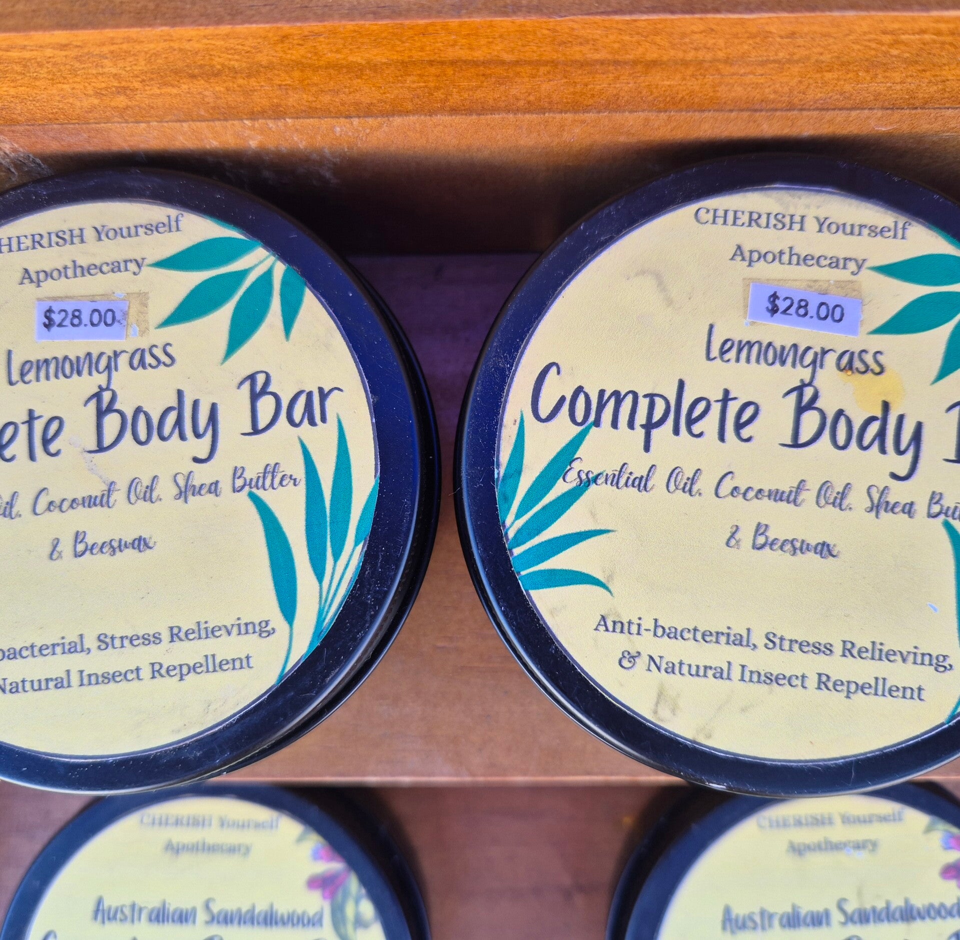 Lemongrass: antibacterial, stress relieving & natural insect repellent. (Essential oil, coconut oil, Shea Butter & Beeswax)